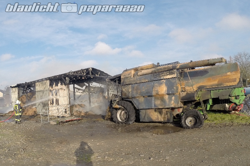 Feueralarm in Arnsdorf bei Radeberg am Montag Vormittag. An der Oberstraße brach aus noch ungeklärter Ursache ein Feuer an einer Scheune aus. „Als wir an der Einsatzstelle eintrafen, stand das Gebäude bereits fast in Vollbrand“, so Einsatzleiter Jens Zimmermann. Er und seine Kameraden leiteten sofort einen Löschangriff ein, um die Flammen abzulöschen. Dennoch konnte nicht verhindert werden, dass ein in der Scheune geparkter Mähdrescher komplett ausbrannte. Auch jede Menge Stroh fing Feuer und musste mühsam mit einem Traktor herausgezogen und einzeln abgelöscht werden. Besondersnervenaufreibend für die Kameraden der Freiwilligen Wehren: Erst gestern hatten Unbekannte einen Müllhaufen im Ort angezündet, wenige Tage zuvor brannte ein Schuppen im Ort. Einsatzleiter Zimmermann: „Wir gehen nebenbei noch arbeiten und haben zu Hause eine Familie, da wird es schon langsam zur Belastung, wenn man ständig zum Einsatz muss“. Bleibt zu hoffen, dass es sich nicht um einen Serienbrandstifter handelt. Die Kriminalpolizei hat die Ermitlungen zur Brandursache aufgenommen.