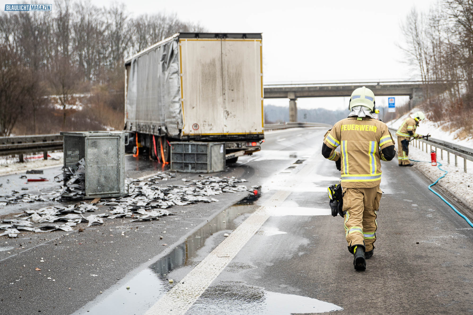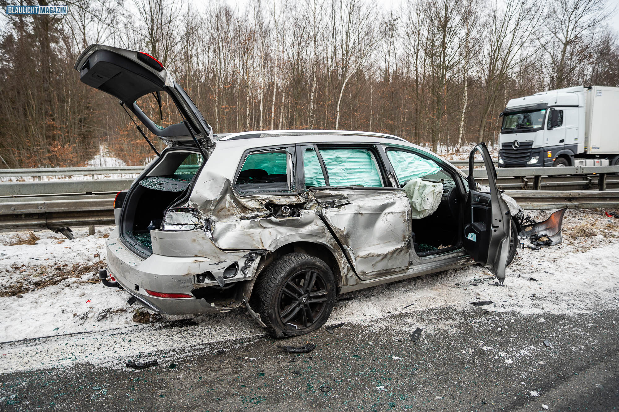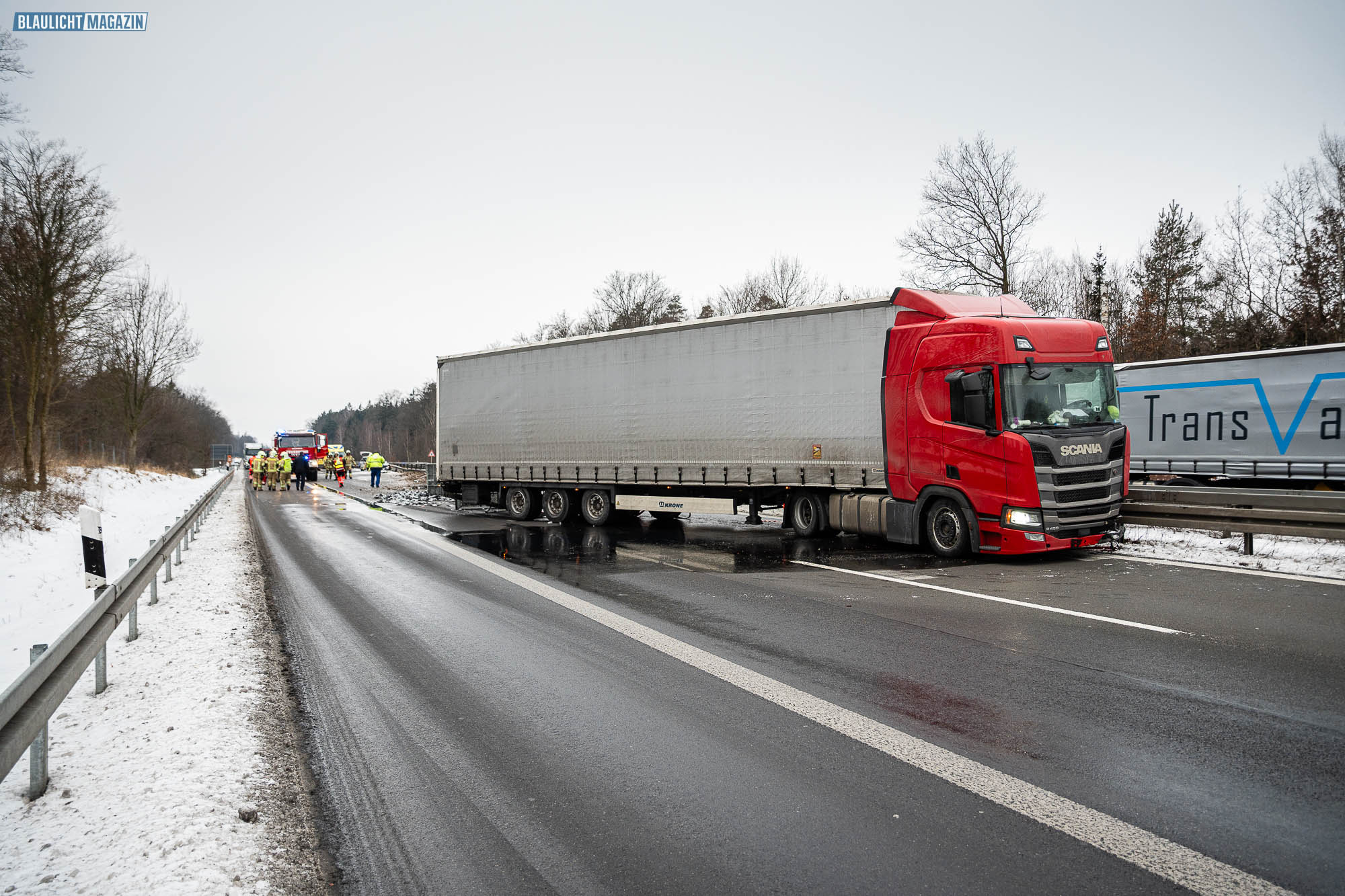 Ein Unfall mit Folgen hat sich am Donnerstagnachmittag auf der A4 bei Pulsnitz ereignet. Aus bisher ungeklärter Ursache stieß ein PKW in Fahrtrichtung Görlitz mit einem LKW zusammen. Durch die Wucht des Aufpralls wurde der PKW in die Mittelschutzplanke gedrückt, am LKW wurde der Abflieger aufgerissen, Ladung verteilte sich auf der Fahrbahn und der Dieseltank wurde beschädigt. Der LKW kam quer auf beiden Spuren zum Stehen. Die beiden Fahrzeugführer wurden durch den Unfall leicht verletzt. Der Rettungsdienst versorgte die Männer.
