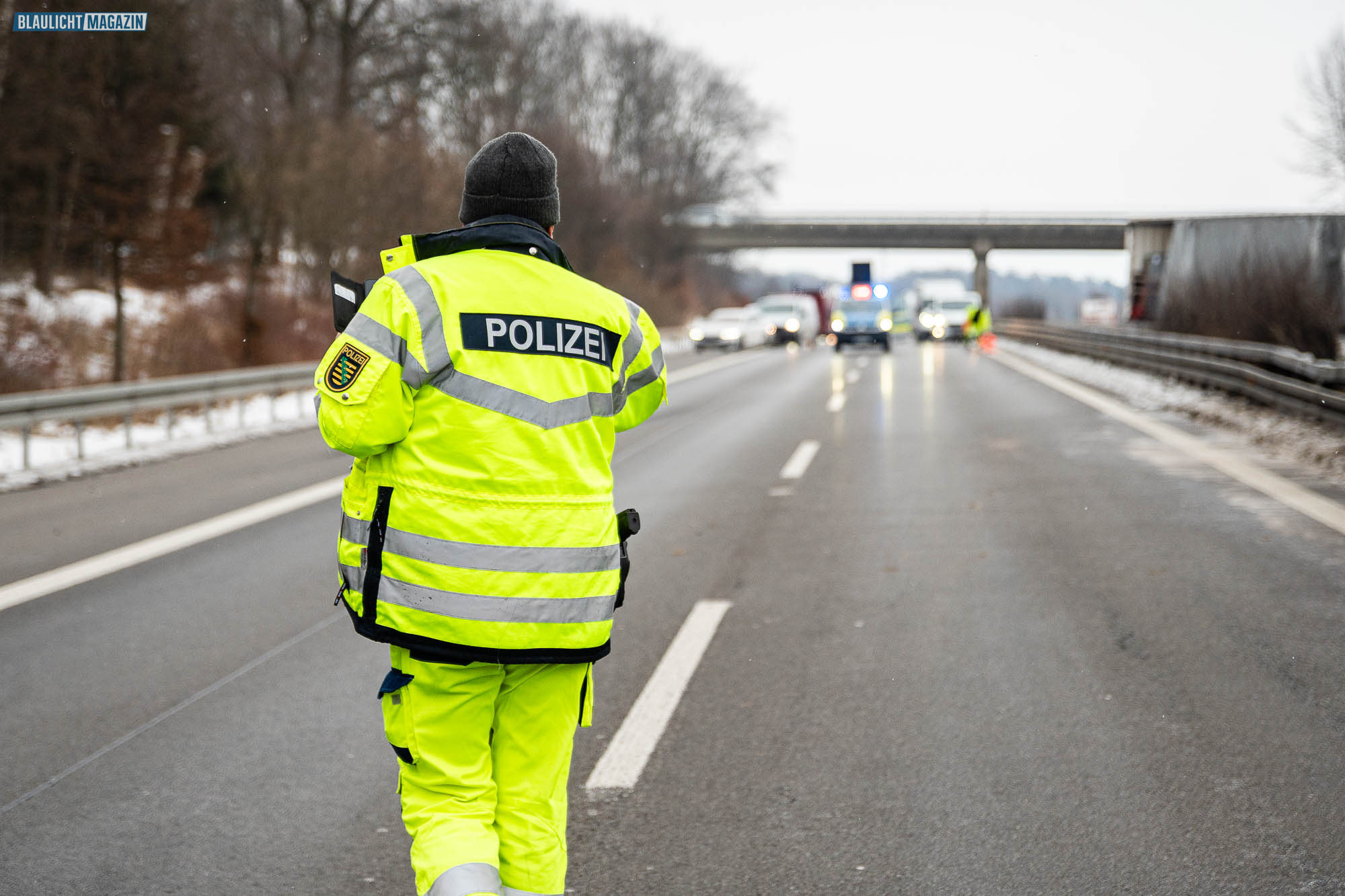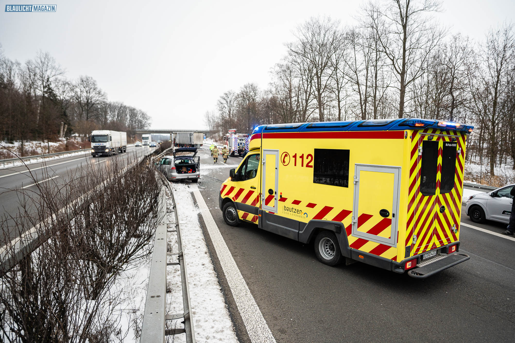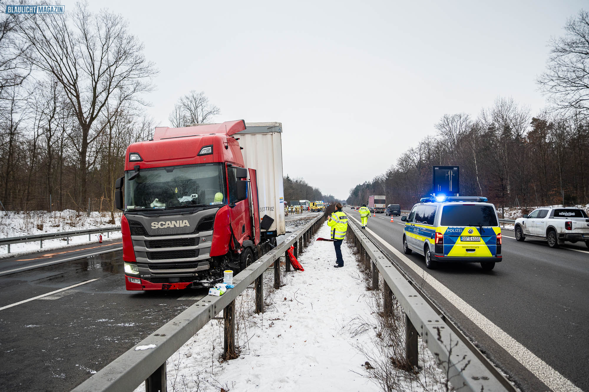 Die Feuerwehr rückte an, um den Brandschutz sicherzustellen und die Ausbreitung des Dieselkraftstoffs zu verhindern. Die Polizei sperrte die Autobahn in Richtung Görlitz, zeitweise zur Beseitigung von Trümmern auch auf der Gegenrichtung in Richtung Dresden. Später wurde das THW hinzugezogen, um die Vollsperrung der Autobahn fortzuführen und ein Auffahren in Höhe von Pulsnitz zu verhindern. In den umliegenden Orten entstand Chaos durch den Umleitungsverkehr.