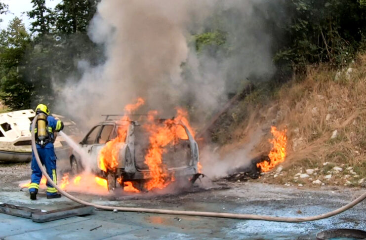 Kroatische Feuerwehrschule: PKW-Brand und Atemschutzübung