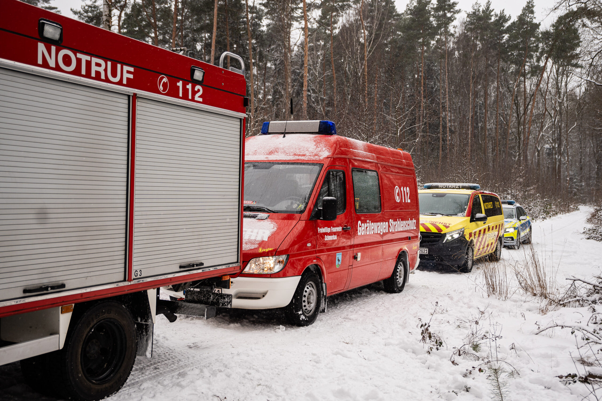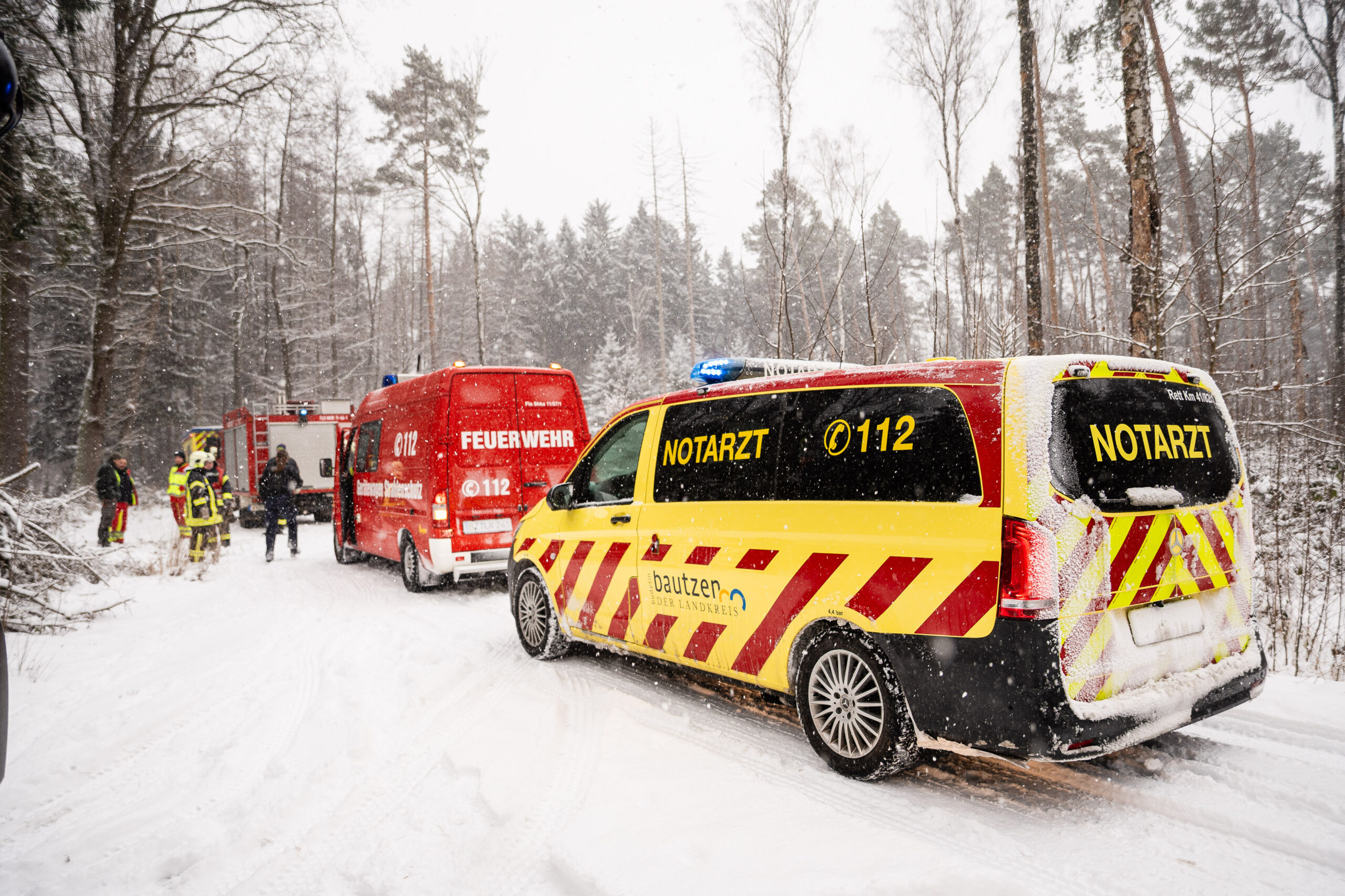 Am Freitagmittag hat ein Förster im Waldgebiet am Tannenbergweg bei Koitzsch (nahe Königsbrück) einen verunfallten Kleintransporter entdeckt. Das Fahrzeug lag seitlich auf einem abgelegenen Waldweg, unterhalb der Fahrertür befand sich ein junger Mann, der offenbar eingeklemmt war. Der Förster alarmierte umgehend Feuerwehr und Rettungsdienst.