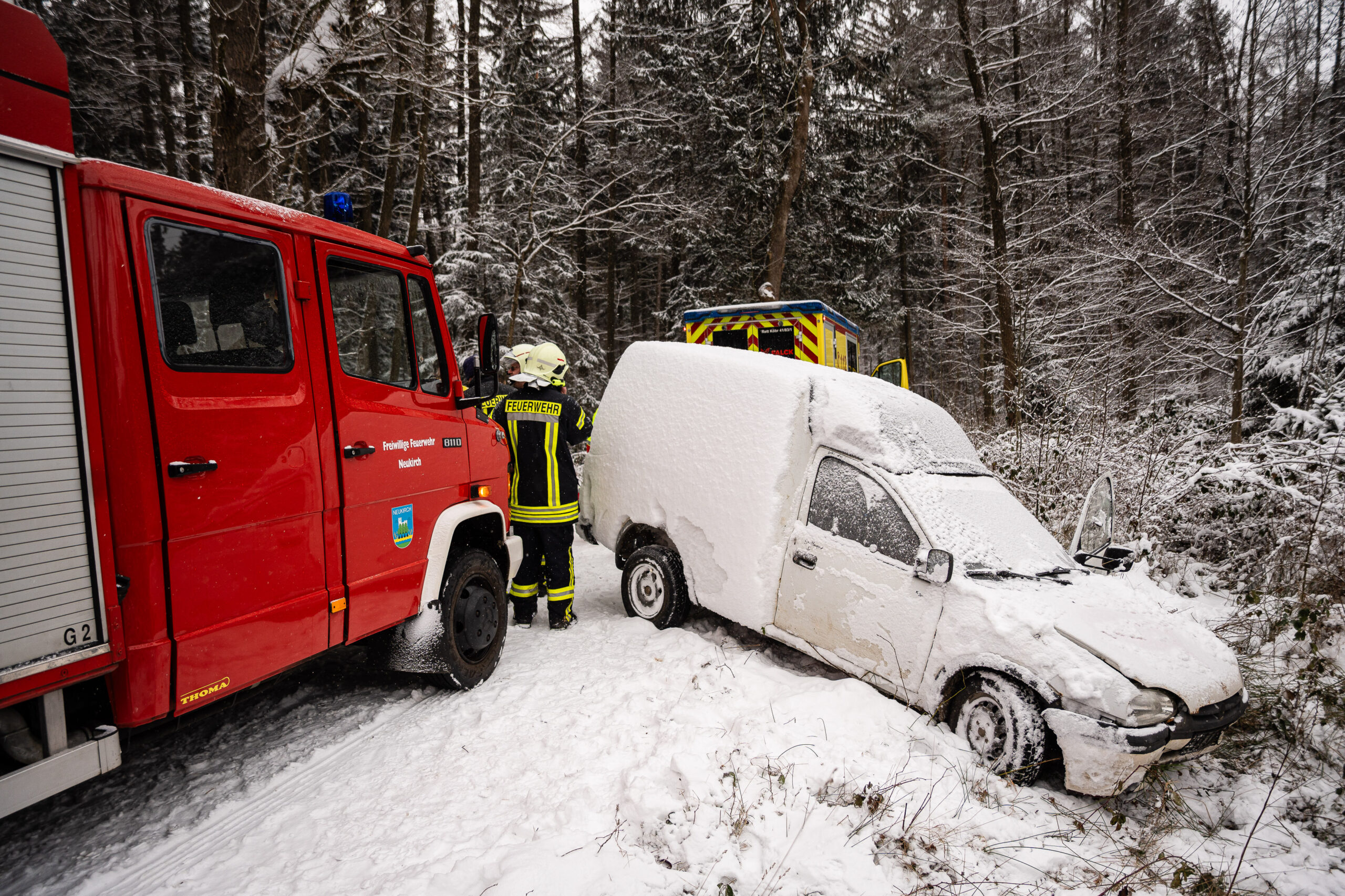 Nach aktuellem Kenntnisstand war der 23-Jährige mit dem Kleintransporter (Opel) auf einem Waldweg unterwegs, als es zu einem Unfall kam. Das Fahrzeug soll gegen am Wegesrand gelagerte Baumstämme geprallt und anschließend auf die Seite gekippt sein. Wie genau es dazu kam, ist noch unklar. Möglich ist, dass der Transporter ins Schleudern geriet und der Fahrer dabei aus dem Fahrzeug geschleudert und darunter eingeklemmt wurde. Diese Hinweise sind jedoch nicht abschließend bestätigt.