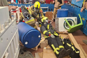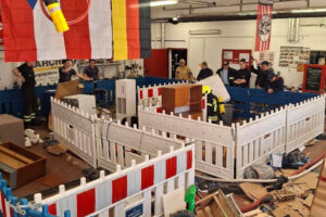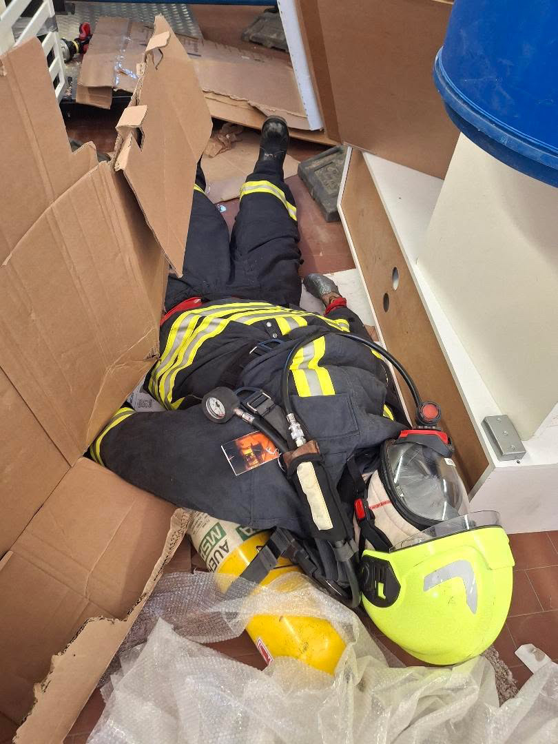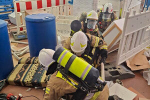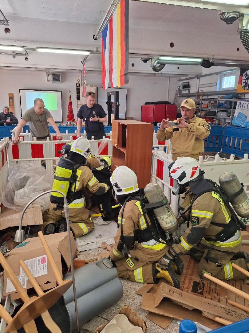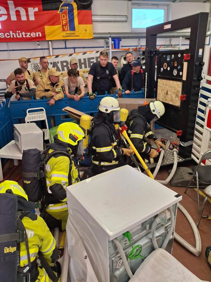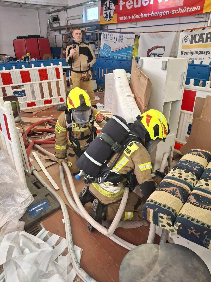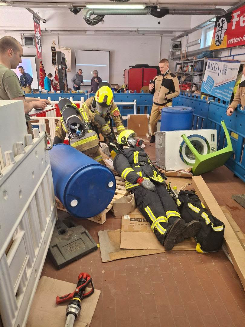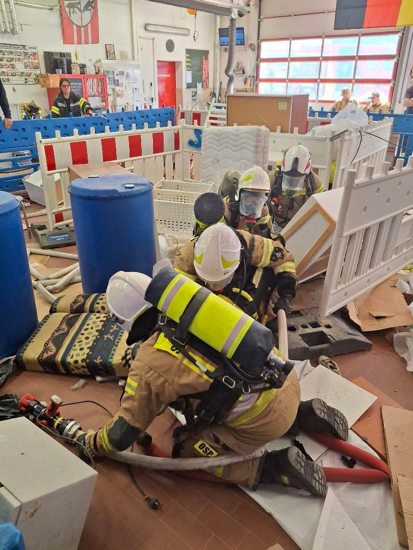 Die Bilder vor Ort zeigten eindrucksvoll, wie realitätsnah das Szenario aufgebaut war: Waschmaschinen, Möbelstücke, Kartons, Fässer, Türen, Schläuche und provisorische Engstellen erschwerten jede Bewegung. Genau solche Bedingungen können Einsatzkräfte im Ernstfall jederzeit antreffen.