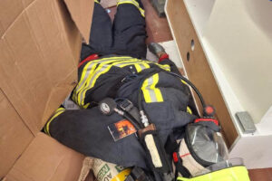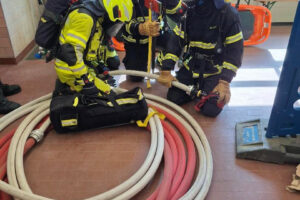 Herzstück des Ausbildungstages war ein intensives Atemschutznotfalltraining. In einer eigens aufgebauten, stark vermüllten Messi-Übungswohnung mussten die Teams einen verunglückten Kameraden retten. Der Dummy brachte bereits 115 Kilogramm auf die Waage. Gemeinsam mit Ausrüstung und Rettungsmitteln mussten die Trupps den verunfallten Geräteträger auf dem Rückweg mit insgesamz rund 150 Kilogramm durch enge, verwinkelte und mit Hindernissen blockierte Bereiche bewegen.