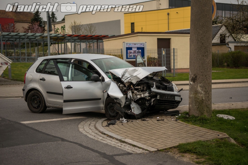 Pkw kracht gegen Betonmast in Grossroehrsdorf